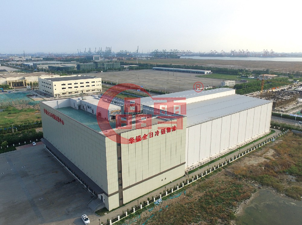 太古冷鏈物流有限公司高架冷庫為單層鋼結構外保溫式冷庫,儲存70,000托板以上。總建筑面積約44,119m2 ,總占地面積約38,000m2。主體冷庫墻板采用200mm接插式PIR庫板,防火墻采用200mm結構巖棉,夾芯板穿堂采用150 mm接插式PIR庫板,總庫板面積約為75000m2。